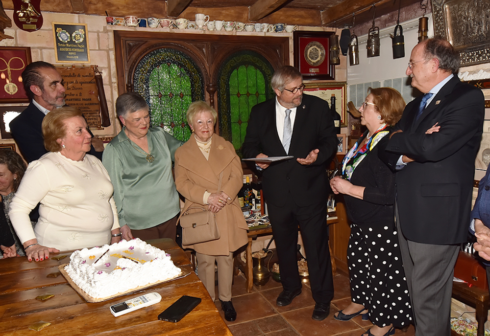 Paqui Bueno, quien obstenta este nombramiento desde hace ochos años, recibió a la junta directiva de la agrupación y a una delegación de la cofradía pasionaria de Cartagena del mismo nombre, entre otros asistentes a una muy agradable velada.