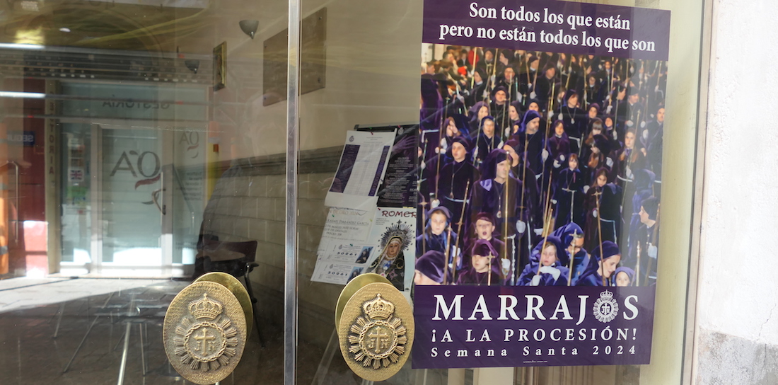 Imagen de uno de los carteles colocados por la ciudad por la Cofradía de Nuestro Padre Jesús Nazareno con el lema 'Son todos los que están, pero no están todos los que son. ¡Marrajos, a la procesión!'.