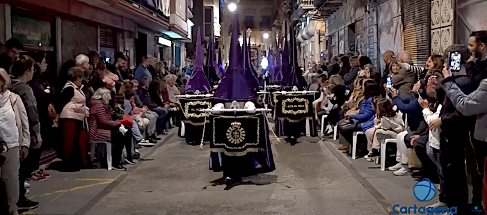 La 'Procesión de las promesas', en el centenario de la llegada de la imagen que creó Capuz, ha salido a la calle a su hora y se puede seguir su recorrido por el casco histórico a través de las transmisiones que ofrece 'Tele Cartagena' y 'La Semana Santa de Cartagena TV'.
