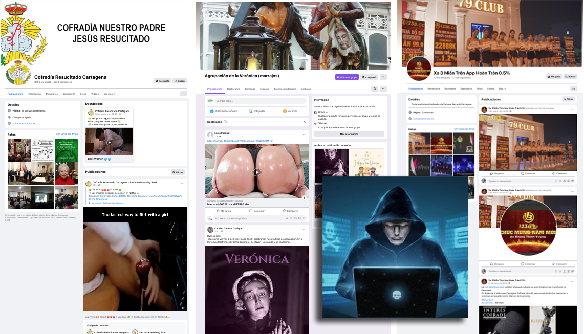 El perfil en Facebook de la Cofradía del Resucitado ha sufrido la entrada y apoderamiento de un 'pirata informático', que ha llenado el portal de contenido erótico, lo que también ha empezado a sufrir esta semana el perfil de la agrupación marraja de la Verónica. Por su parte, 'Cartagena Cofrade' ha sido arrebatada su administración y cambiada de nombre. La hermandad blanca ha puesto en conocimiento de la Policía Nacional lo sucedido.