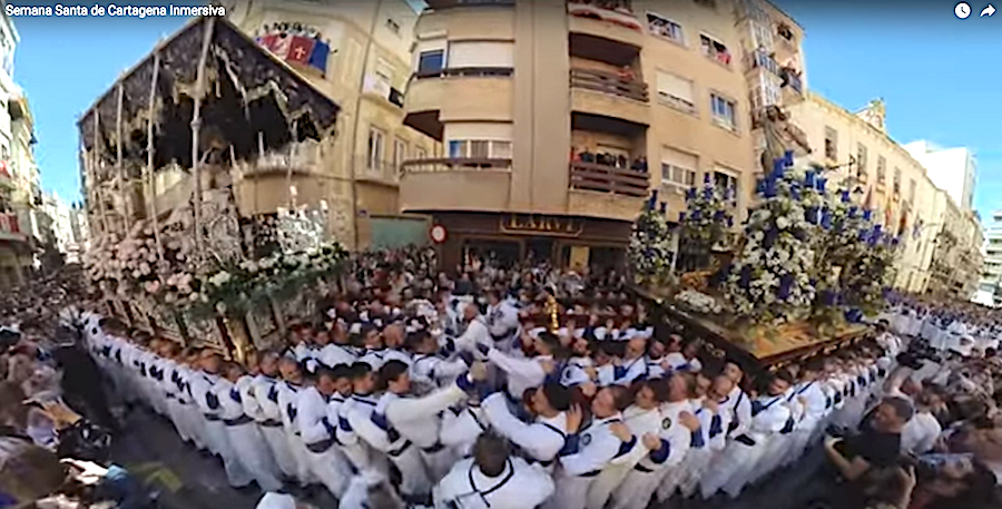 Cartagena presentó en FITUR un novedoso montaje para mostrar y promocionar la solemnidad y espectacularidad de sus procesiones. 'Semana Santa de Cartagena Inmersiva' es para verla en 3D con gafas especiales, pero con el vídeo que mostramos podemos conocer qué escena recoge. Se trata de una iniciativa de Fundación Integra en colaboración con la Junta de Cofradías de la Semana Santa de Cartagena.