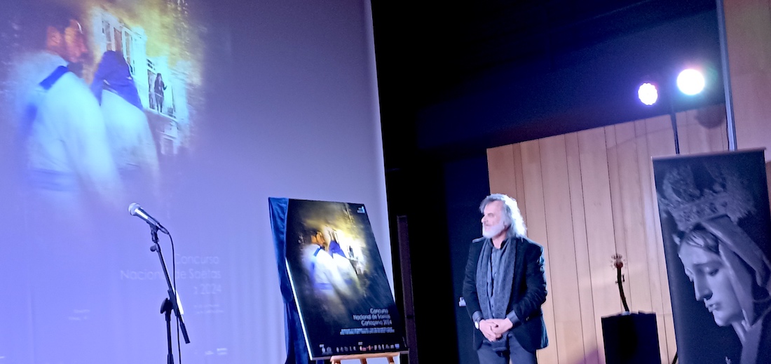 El pintor palmesano da a conocer la imagen oficial del 'X Concurso nacional de saetas' en un acto celebrado en La Unión en la que Fernando Sáenz Elorreta presentó los artísticos trofeos que ha creado para esta ocasión. Cuando acabe la Semana Santa comenzarán los preparativos del centenario de la llegada de la 'Caridad Chica' de Capuz a Cartagena.