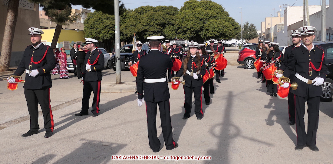 El colectivo musical de cornetas y tambores acudirá, por cuarta ocasión, a los desfiles pasionarios de la localidad alicantina del Miércoles y Viernes Santo. La foto corresponde a la participación del grupo ayer en la romería de San Antón.