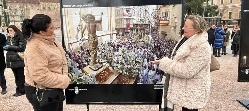 Chelo Cánovas, periodista de Radio Murcia Economía, informó que la presidenta de la Junta de Cofradías de Cartagena, Marien García Boj (a la derecha del lector en la foto adjunta del pasado año en Madrid), le ha comentado que la controvertida imagen oficial de las procesiones cartageneras de 2024 no estará en la Feria Internacional de Turismo como tampoco estuvo el del pasado año.