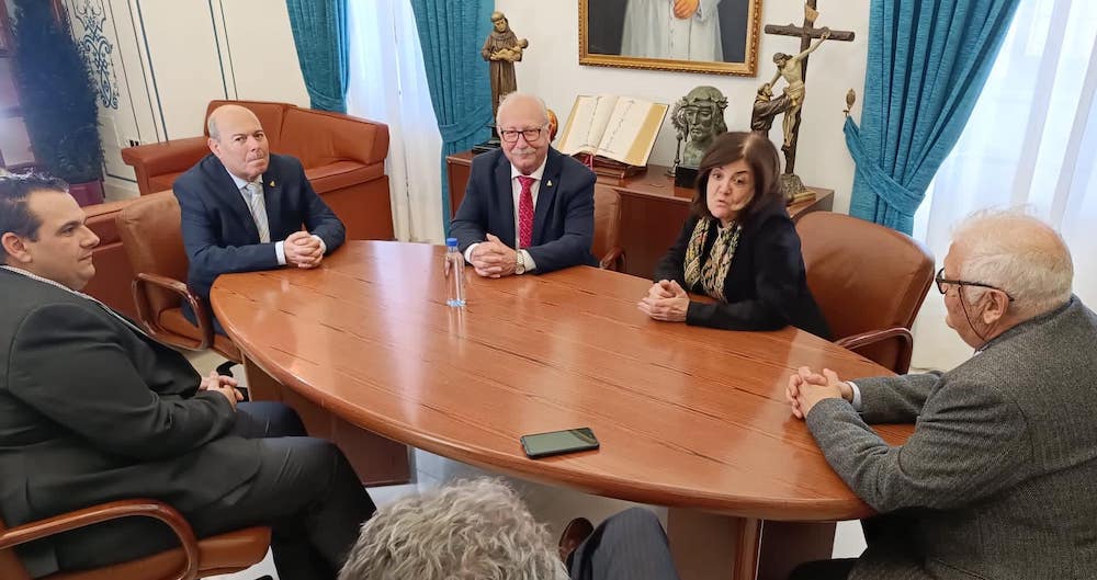 La directiva encarnada, que encabeza Pedro Ayala como hermano mayor, llevó a cabo una visita institucional al campus de Los Jerónimos, donde se presentó ante la presidenta de la Universidad Católica San Antonia, a quien se invitó a participar en la Salve Grande de marzo.