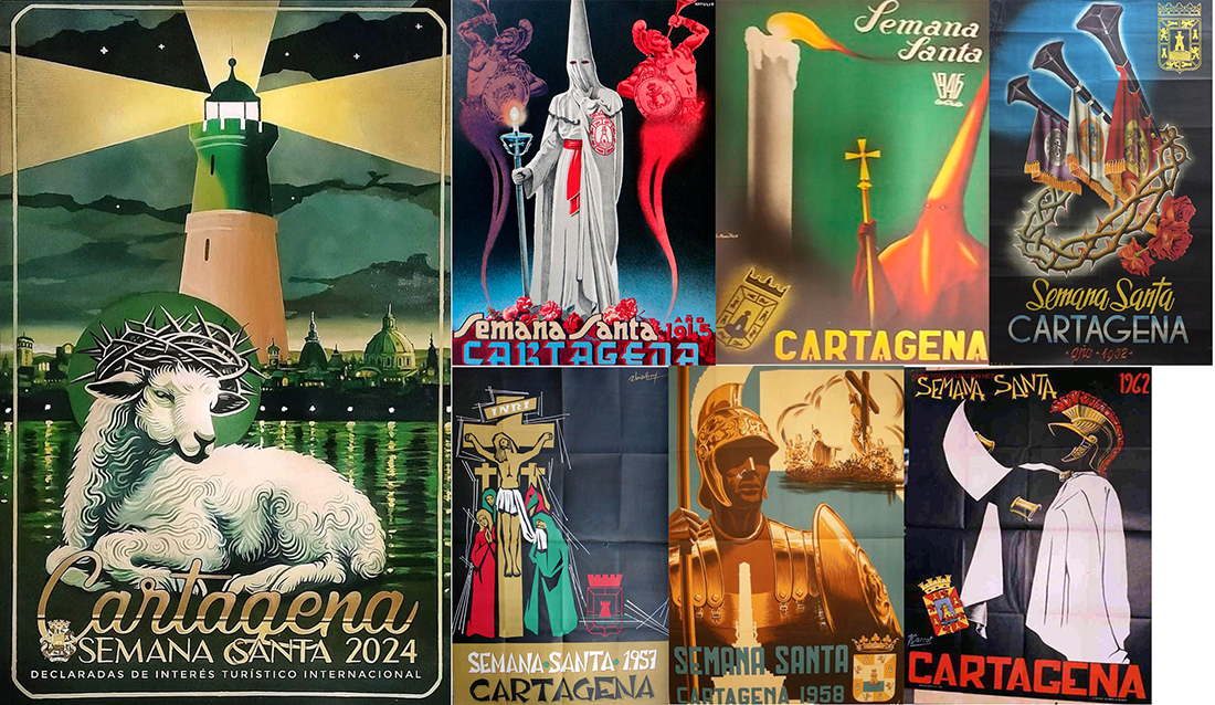 La imagen oficial de la Semana Santa de Cartagena 2024 ha generado división de opiniones, con mayoritario pronunciamiento en redes sociales de los que están en contra, donde, incluso circulan ya muchos memes y chistes. La noticia de su presentación figura en los Facebook de las cofradías salvo en la marraja. Vox considera que no representa a la Semana Santa y Sí Cartagena pide retirarlo, lo que no se contempla desde el gobierno local. Los autores defienden su simbolismo bajo una reinterpretación de la cartelería antigua. Por ello, ofrecemos la controvertida imagen junto a carteles de hace décadas para que opinen los lectores. Lo que sí se ha conseguido es que sea el cartel procesionista del que más se ha hablado en mucho tiempo.