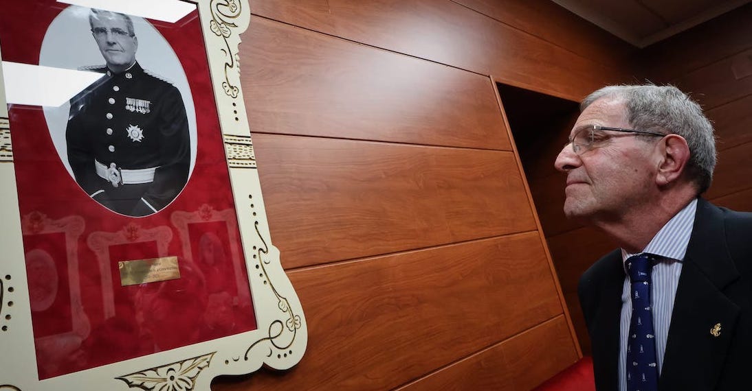 Hace unos días tuvo lugar, en la sala capitular de la sede de la Cofradía California, la colocación del cuadro con la imagen del anterior hermano mayor de la hermandad, Juan Carlos de la Cerra, quien posa con uniforme de la Armada, su profesión cuando accedió al cargo. Al verlo nos hemos interesado en conocer cuál fue el anterior militar que estuvo al frente de la familia encarnada procesionista y resulta que fue más de un siglo atrás.