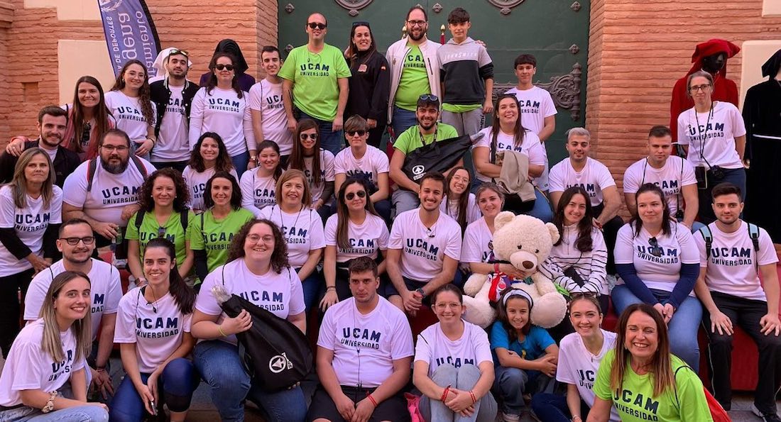 La prueba deportiva y senderista organizada por la Junta de Cofradías de Semana Santa genera un gran ambiente y encumbra como primer ganador a José Carlos García, con Saray Paredes como triunfadora femenina. En la foto, integrantes de la agrupación marraja de los Estudiantes que se ha llevado un jamón como el colectivo procesionista con más participantes.