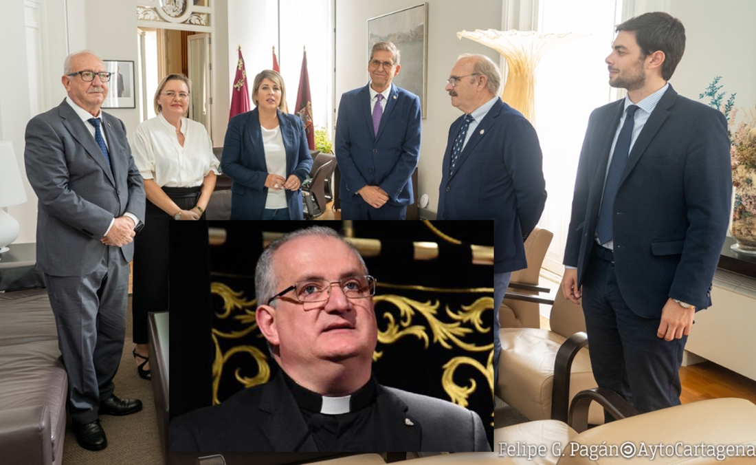 El granadino Álvaro Abril presentó en la sala capitular de la Cofradía Cartagena los bocetos que deben ir materializándose en varios años y que dotará a la base procesional de la Virgen de ‘esencia cartagenera’, siendo un tributo a Rafael de Eleuterio pero sin perder el aire sevillano del actual, único encarnado de la Semana Santa de Cartagena que sale con palio.