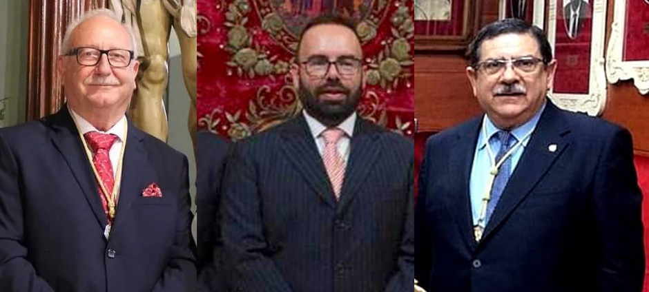 Las cofradías del Prendimiento y del Socorro han estrenado hermanos mayores y casi todas las agrupaciones californios han tenido o tendrán cita con las urnas, por donde también han pasado varios grupos marrajos, incluidos los dos que tienen a los presidentes más veteranos. En la foto, Javier Pavía Galán (primero por la derecha del lector), quien conducirá a los hermanos del Socorro los próximos cuatro años, junto al capellán de la hermandad, Lázaro Gomariz.