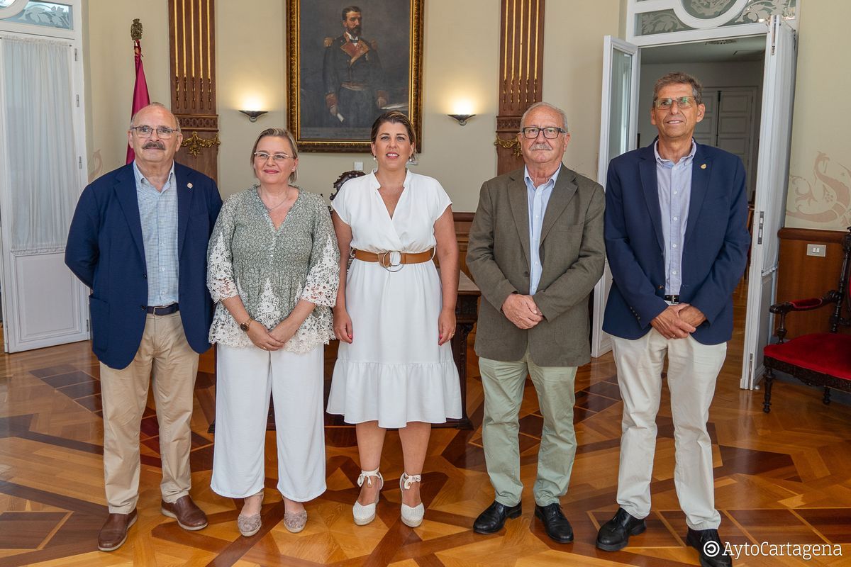 La foto tomada en el Palacio Consistorial, con motivo de una reunón con la alcaldesa, ha servido para ver cómo ha quedado formado el órgano que aglutina a las cuatro principales cofradías pasionarias de la ciudad tras unas últimas semanas en las que se han producido relevos en dos de los hermanos mayores.