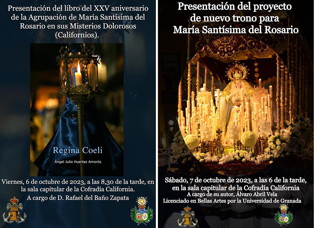 El colectivo procesionista californio celebra tres días esta semana los cultos (en la iglesia de Santa María) y actos (en la sala capitular de la Cofradía del Prendimiento) en honor a la imagen, que incluyen misas, veneración a la Virgen y las presentaciones del libro del 25 aniversario escrito por Ángel Julio Huertas y del proyecto de la nueva peana de procesión. El 'Rosario de las antorchas' tendrá lugar el 21 de octubre.