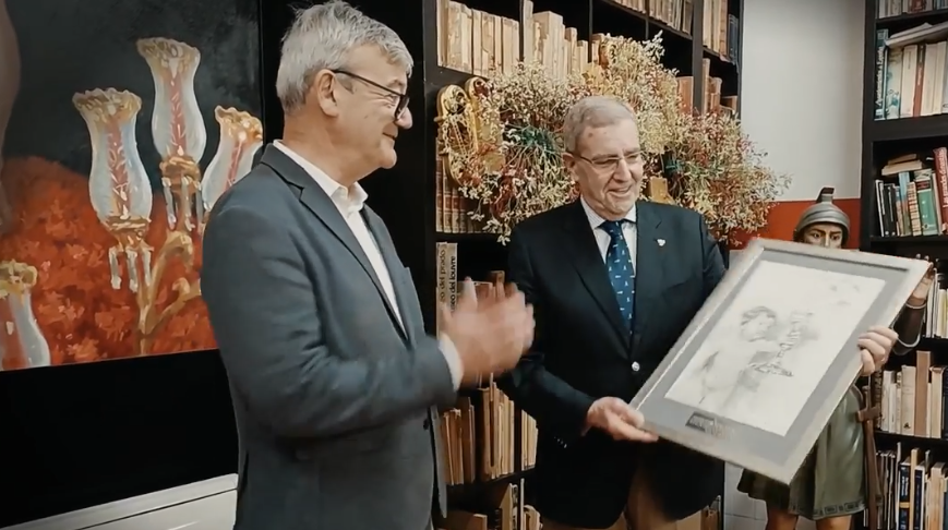 La Real e Ilustre Cofradía del Cristo de los Mineros de La Unión ha distinguido con la insignia de la hermanad y ha sido nombrado como 'embajador' de sus procesiones "por su entrega, difusión y compromiso", explicó el hermano mayor, José Cortado, en la entrega de la distinción, que tuvo lugar en el Mercado Antiguo de la ciudad unionense.