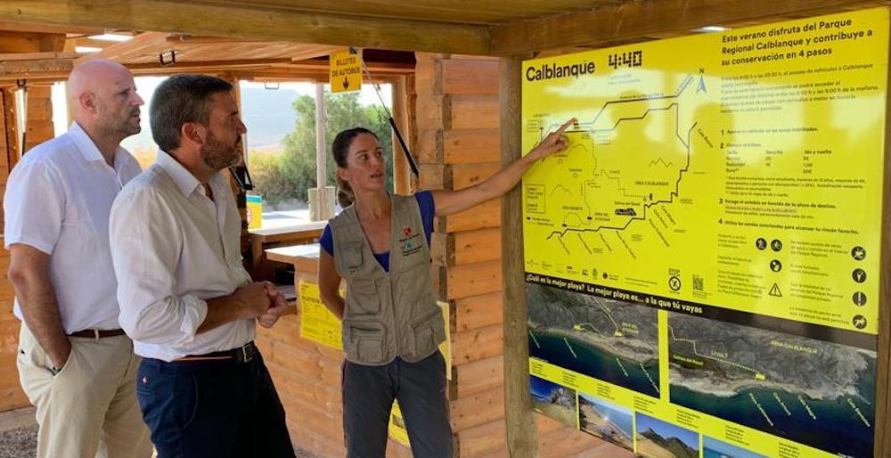 En los dos últimos años, el Gobierno regional ha invertido más de 557 mil euros en la playa de Calblanque con el objetivo de mejorar la flora, la fauna y la biodiversidad del entorno así lo declaraba el consejero de Agua, Agricultura, Medio Ambiente y Emergencias, Antonio Luengo, donde esta mañana ha visitado el parque de Calblanque con la compañía del concejal de Infraestructuras, Diego Ortega.