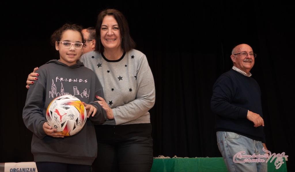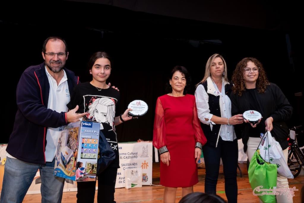 Alumna de Salesianos y de 12 años de edad, conquista la décimo sexta edición con un dibujo sobre Navidad y deporte con el epicentro de un balón de voleibol, deporte que practica y que, debido a que tenía un partido, le impidió recoger la bicicleta destinada al dibujo ganador de un concurso que volvió a reunir a más de doscientos participantes (abarcaban 20 centros docentes) en una mañana aderezada por una chocolatada, juegos tradicionales, exhibición de bailes flamencos y una multitud de regalos y premios.