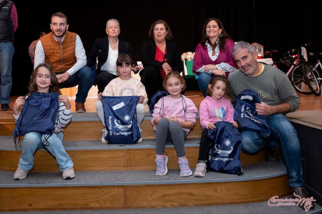 El epílogo fue el sorteo de regalos, entre los que figuraban balones, pájaros con jaula, un lomo, camisetas y, entre otros, una bicicleta donada por Cofise y un balón firmado por los futbolistas del FC Cartagena de la segunda división del fútbol profesional.