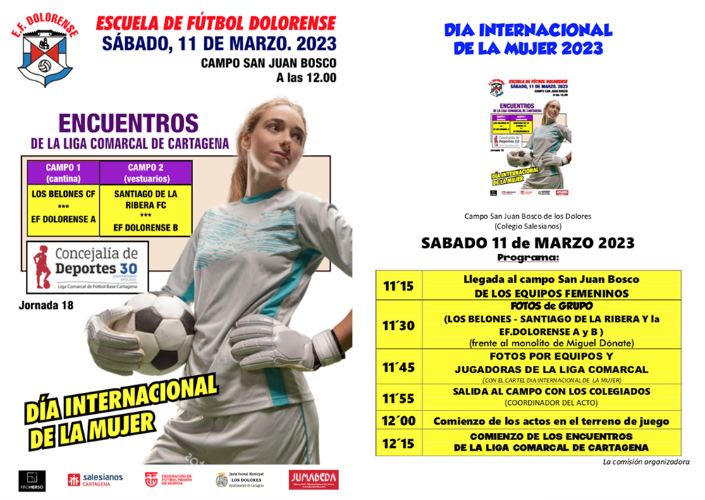 El campo San Juan Bosco de la Barriada de Hispanoamérica-Los Dolores acoge este próximo sábado por la un cuadrangular con los equipos de Los  Belones, Santiago de la Ribera y conjuntos A y B del EF CD Dolorense con motivo del ‘Día internacional de la mujer’.