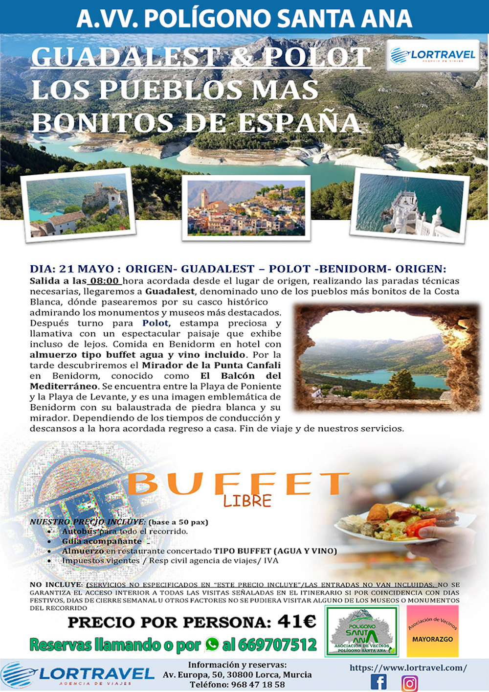 La asociación vecinal informa que este viernes (11 horas) hay un encuentro informativo con la Policía Nacional (con exhibición) en la explanada del colegio Miralmonte, que el sábado tendrá lugar la narración de 'En busca de mi historia' en la plaza del Charro (18.30 horas) y que se está organizando un viaje a Guadalest para el 21 de mayo.
