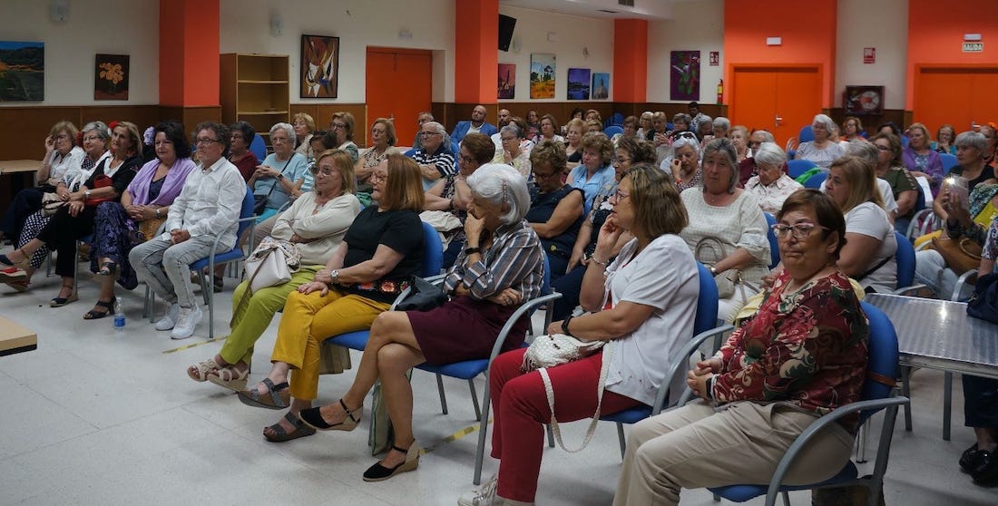 La bendición de la cruz de mayo en la entrada del local social, una exposición de pintura de los alumnos de Javier Lorente, la presentación del libro 'La otra cara de la catedral antigua', obra de Magdalena Blesa, quien a continuación ofreció un recital de poesía, abrieron ayer los actos de las jornadas culturales que organiza la asociación de vecinos, que se prolongarán hasta el fin de semana y que estas tarde ofrece un taller de risoterapia (18 horas) y Dueto Literario con la presentación de 'De la zarzuela a la copla' (suspendido por COVD-19).