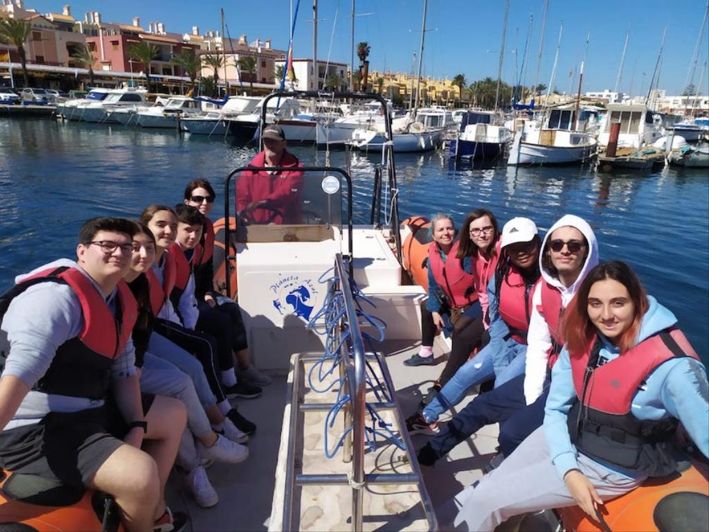 Nos centramos ahora en este último apunte, el de acogida, que se prolongó durante cinco días. “Se llevaron a cabo actividades del proyecto con salidas turísticas, todas relacionadas con el agua, como transformar humedad en agua o la recogida de pluviales, por poner unos ejemplos”, explican quienes fueron guías de un recorrido que hizo escalas en las salinas de San Pedro del Pinatar, en ‘Planeta Azul’ de Cabo de Palos, en el Mar Menor y en las norias de Alcantarilla y La Ñora, a los que se sumaron el Foro Romano y la visita al ARQUA para conocer los fondos y la arqueología marina. “Son actividades que reflejan el papel del agua en la naturaleza, su aprovechamiento, la concienciación…”, apuntan, añadiendo que también se llevó a cabo una plantación de cipreses en las instalaciones de Salesianos. Así mismo se plantearon situaciones relevantes por estos lares, como son la sequía, el agua de riego, el trasvase, la entrada de ramblas al Mar Menor, la actividad económica que gira en torno al agua… “Los visitantes nos preguntaron por qué hay tantas balsas de recogida de agua y tantos campos de golf. Les llamó mucho la atención”, apuntan.