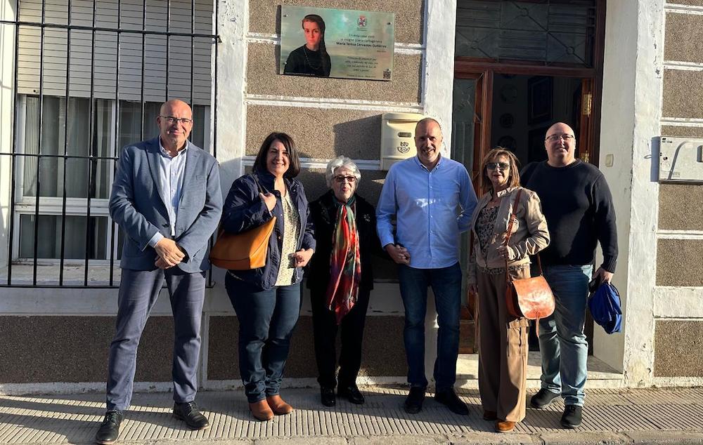 Una placa rinde honores a María Teresa Cervantes en su hogar de Los Dolores