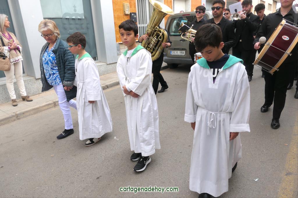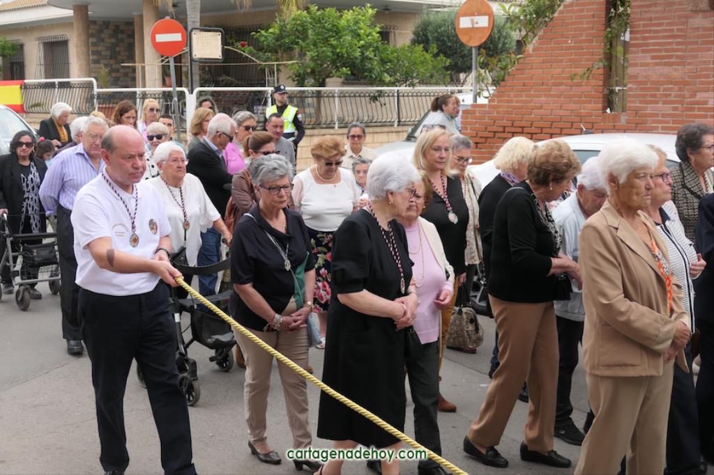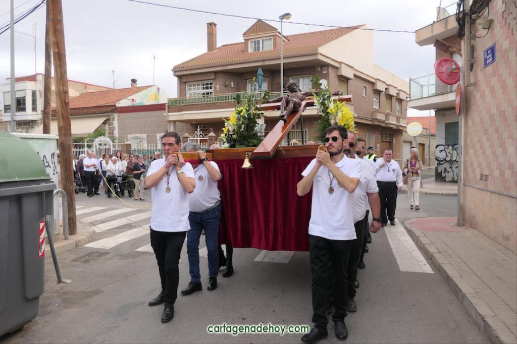 Después de las tres jornadas del triduo en honor al Cristo de la Salud, este miércoles festivo tuvo lugar la procesión con salida desde la parroquia y recorrido por las calles Río Ter, Corredera, Martínez Navarro, Nueva, Tulipán, José Antonio, Sagasta y San Agustín, con regreso al punto de partida. En cabeza, tras el estandarte, fueron integrantes de la Unión Musical Cartagonova, que comenzó interpretando ‘Nuestro Padre Jesús’, composición procesionista a la que sucedieron ‘El evangelista’, Mater Mea’, ‘La Virgen del Tura’ y ‘Jerusalén’.