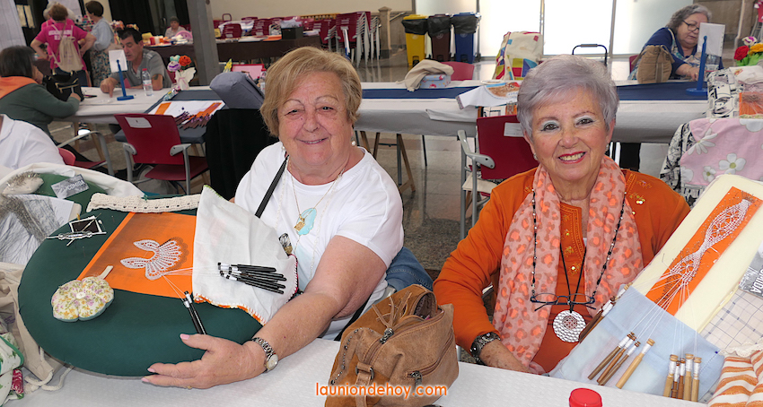Grupos de diferentes puntos de la geografía cartagenera participaron en la vigésimo segunda edición del encuentro de bolillo organizado por la Asociación Mujeres de La Unión en el modernista Mercado Publico y cuyo programa también incluyó visitas al nuevo Museo Minero. En la foto, dos vecinas de Los Dolores.