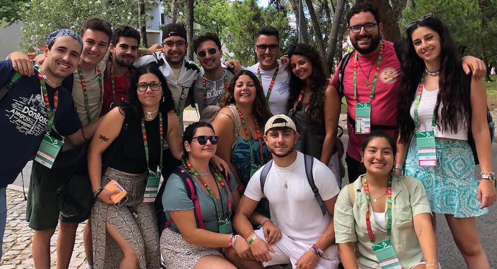 Cincuenta y dos jóvenes de las parroquias de Cartagena se han desplazado a Lisboa (Portugal) para asistir a la jornada mundial de la juventud católica, que hoy tiene previsto recibir al Papa. En la imagen, el grupo de 14 representantes de la casa salesiana de Barriada de Hispanoamérica-Los Dolores que han viajado a tierras lusas.