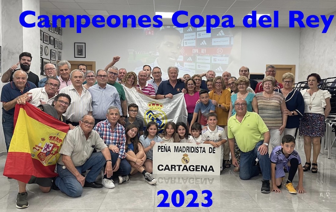 La Peña Madridista de Cartagena vivió con final feliz el partido de la final de la Copa del Rey entre el Real Madrid y el Osasuna, que se resolvió con victoria blanca por 2-1, gracias a los dos goles de Rodrygo, y que supone el vigésimo título para el club en esta competición, en la que no era campeón desde 2014.