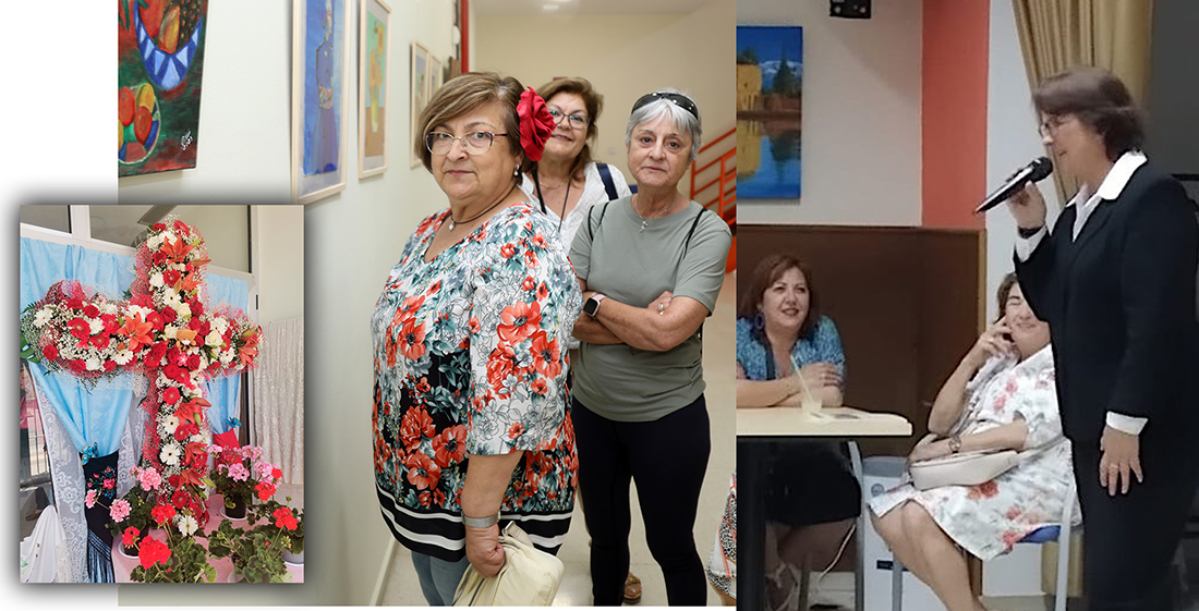 La bendición de la cruz de mayo en la entrada del local social, una exposición de pintura de los alumnos de Javier Lorente, la presentación del libro 'La otra cara de la catedral antigua', obra de Magdalena Blesa, quien a continuación ofreció un recital de poesía, abrieron ayer los actos de las jornadas culturales que organiza la asociación de vecinos, que se prolongarán hasta el fin de semana y que estas tarde ofrece un taller de risoterapia (18 horas) y Dueto Literario con la presentación de 'De la zarzuela a la copla' (suspendido por COVD-19).