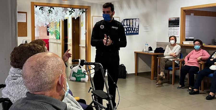 Profesores de la Escuela de Seguridad Pública de Cartagena a personas de la tercera edad del servicio de estancias diurnas del barrio dolorense, gestionado por Mensajeros de la Paz Murcia, para actualizar conocimientos en materia de seguridad y prevención. A esta charla, que tuvo lugar en las instalaciones la calle San Pedro, asistieron unas veinte personas.