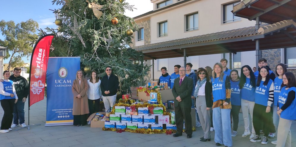 El campus cartagenero de la Universidad Católica en Los Dolores ha hecho donación de juguetes a la campaña muniicpal ‘Juguetea’ y sus alumnos celebran una cena solidaria y entregan los alimentos recogidos en la puerta de cinco supermercados.