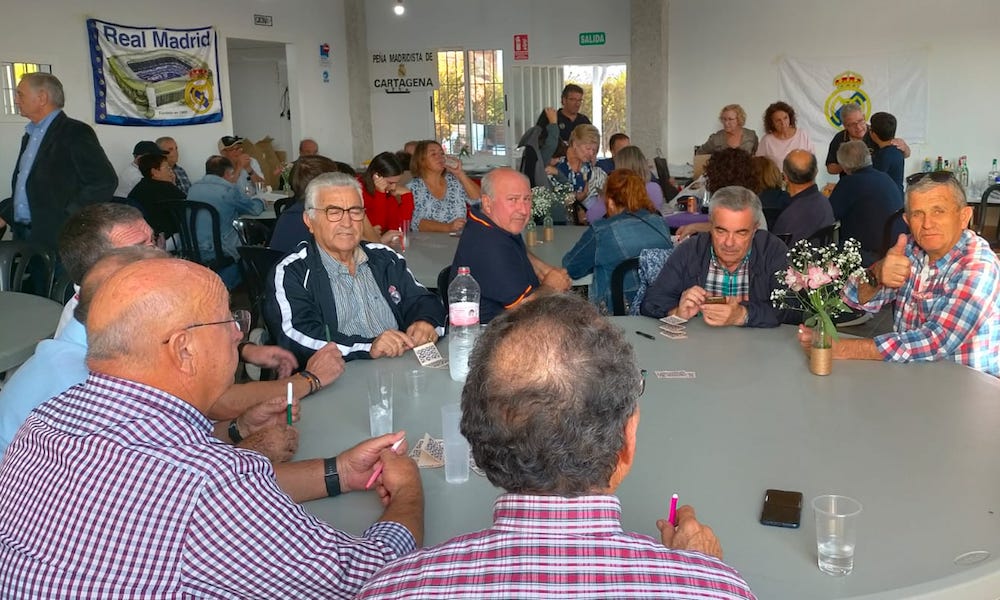 La Peña Madridista de Cartagena recuperó, tras el paréntesis pandémico de tres años, su celebración anual, que en esta ocasión ha sido el 53 cumpleaños y que reunió a cerca de un centenar de seguidores madridistas.