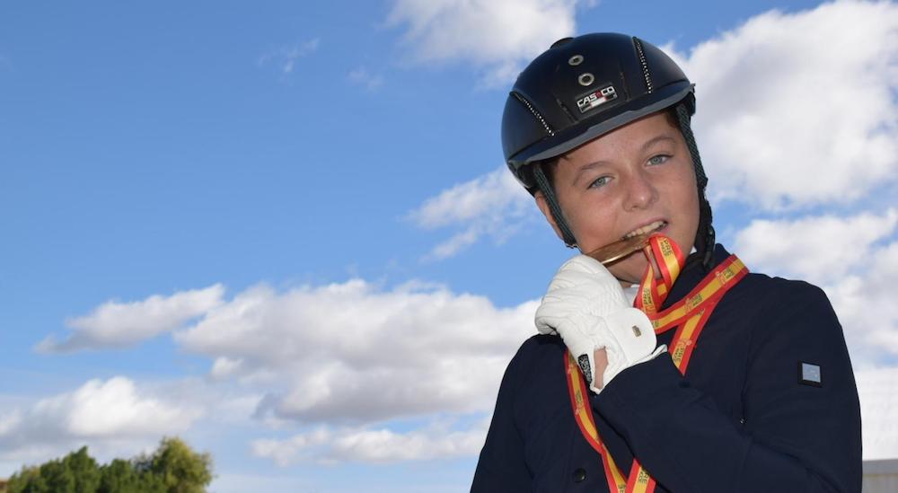 El cartagenero, de 12 años de edad, entrena en Club Maipe, pertenece al equipo Spano Dresaage y es vecino del Polígono Santa Ana, se ha proclamado este fin de semana campeón del mundo de doma clásica PRE al ganar la Copa ANNCE en la categoría alevín dentro del 'Salón internacional del caballo' (SICAB 2022).