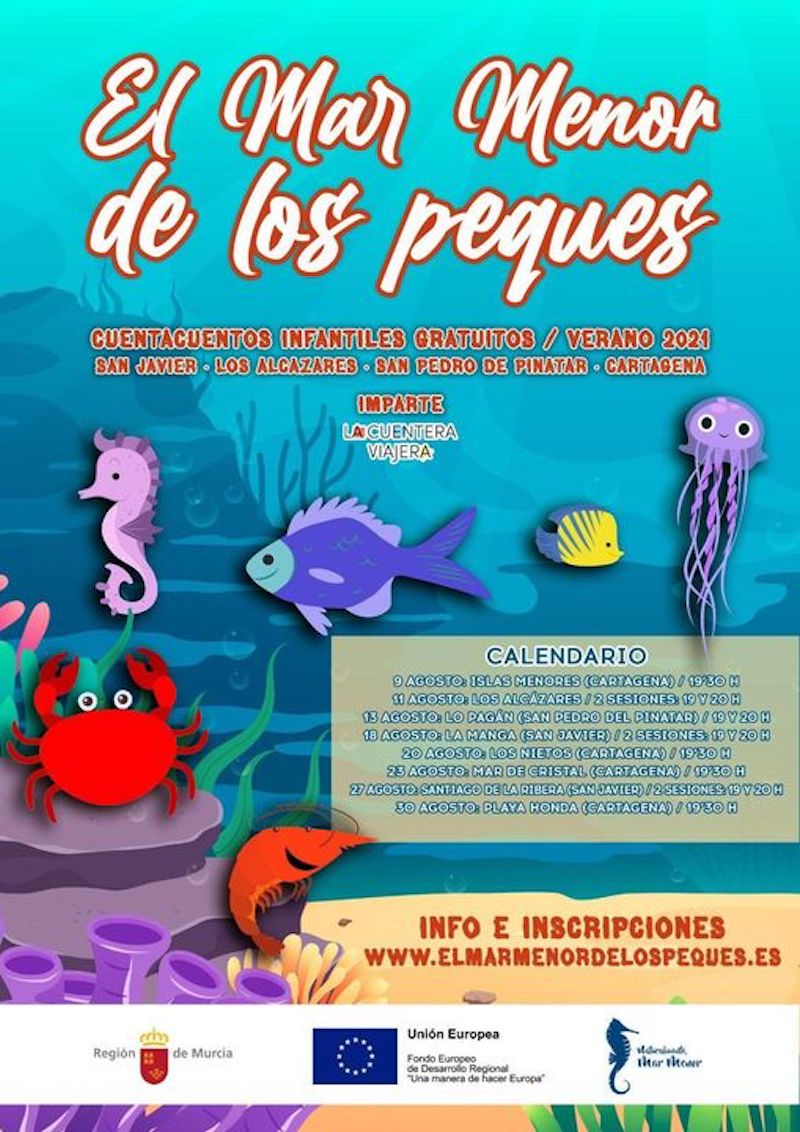 Es el título del cuentacuentos infantil que recorre diversas localidades de playa este mes y que este miércoles estará con ‘La cuentera viajera’ en La Manga con dos sesiones. Seguirá por Los Nietos (20 de agosto), Mar de Cristal (23), Santiago de la Ribrera (27) y Playa Honda (30). Las sesiones comienzan a las 19.30 horas y en los casos de doble representación a las 19 y 30 horas. El acceso es gratuito, aunque es varios lugares están agotadas las reservas previas.