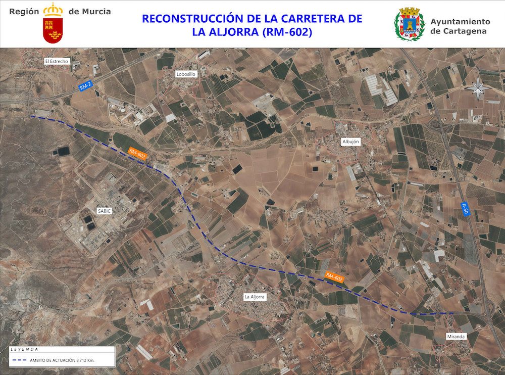 La Comunidad Autónoma ha licitado la obra para la reparación del firme de la RM-602 que conecta Cartagena con Fuente Álamo, y que sirve de acceso a la empresa petroquímica Sabic. La actuación también incluye la rehabilitación de los enlaces y vías de servicio, mejorará la seguridad vial y agilizará la fluidez del tráfico. Las empresas interesadas podrán presentar sus ofertas hasta el 23 de enero de 2023.