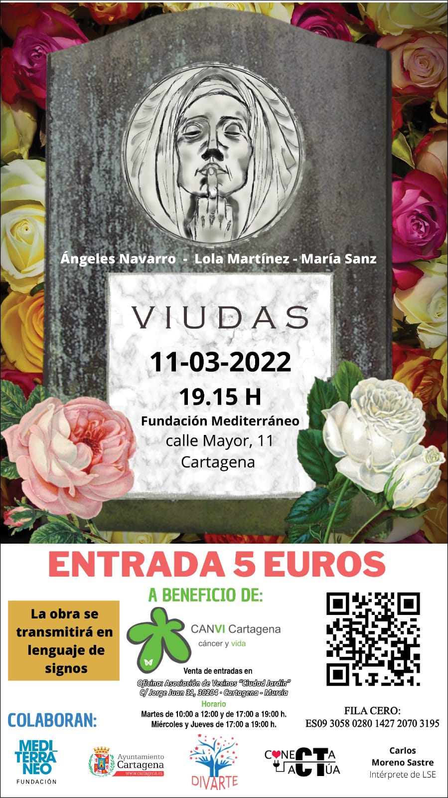 'Viudas', así se llama la obra teatral que el viernes 11 estrenará la asociación Conecta y Actúa Cartagena en el espacio cedido por la Fundación Mediterráneo. El 100% de lo recaudado irá destinado a los programas de CAVI, asociación dedicada al cáncer. Además, la obra será representada en lenguaje de signos gracias a la interpretación de un colaborador voluntario.