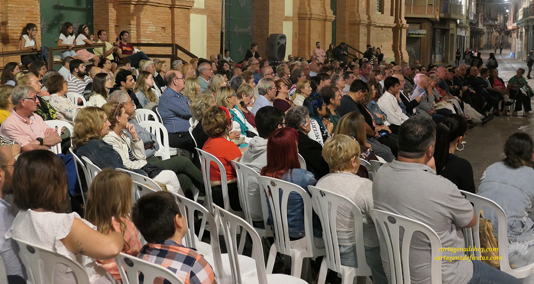 Una estupenda noche atrajo a más de doscientas personas a la calle del Aire de Cartagena para contemplar la representación de ‘Inés del alma mía’, adaptación del clásico de Zorilla de 1844 a cargo de la compañía ‘Ditirambo’, que hoy se traslada al Museo Arqueológico.