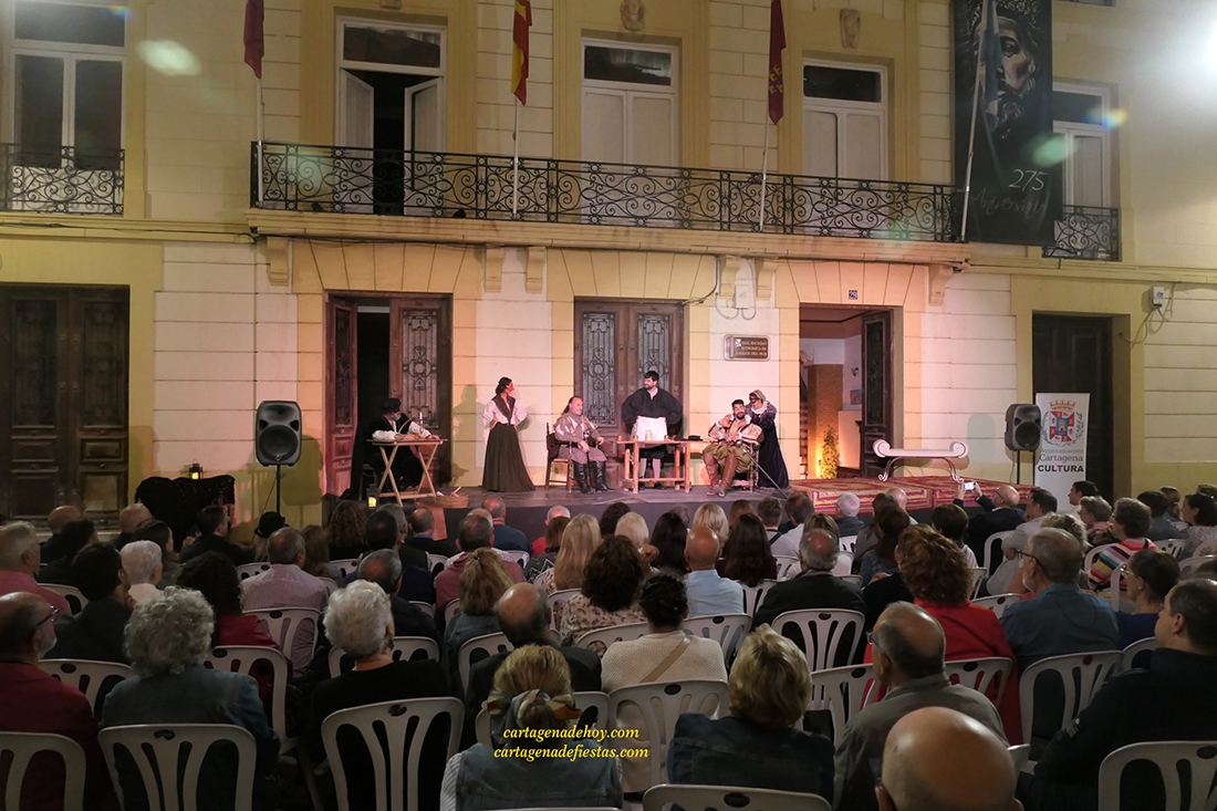 Hace un año se estrenó la versión de 80 minutos creada por 'Ditirambo' para relatar las andanzas de Don Juan Tenorio a pie de calle, en concreto, en el corazón de la ciudad de Cartagena con gran éxito y este año ha vuelto a responder a la altura esperada, con una magnífica puesta en escena de los actores sobre el escenario montado ante la histórica fachada de la Real Sociedad Económica de Amigos del País, frente a la iglesia de Santa María.