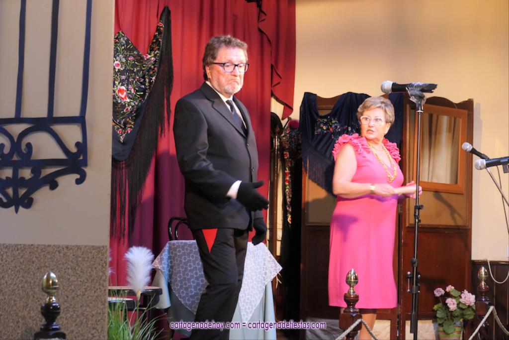 La compañía teatral que dirige Ángel Valverde ha preparado para representar este año cuatro entremeses, tres de ellos escritos por los hermanos Álvarez Quintero y uno de Pedro Muñoz Seca. La obra se estrenó en el local social de la barriada Cuatro Santos y escasos días después tuvo su puesta largo 'en casa', en el salón de actos del más que centenario casino dolorense, que se llenó de público para pasar una tarde muy agradable con los cuatro entremeses.