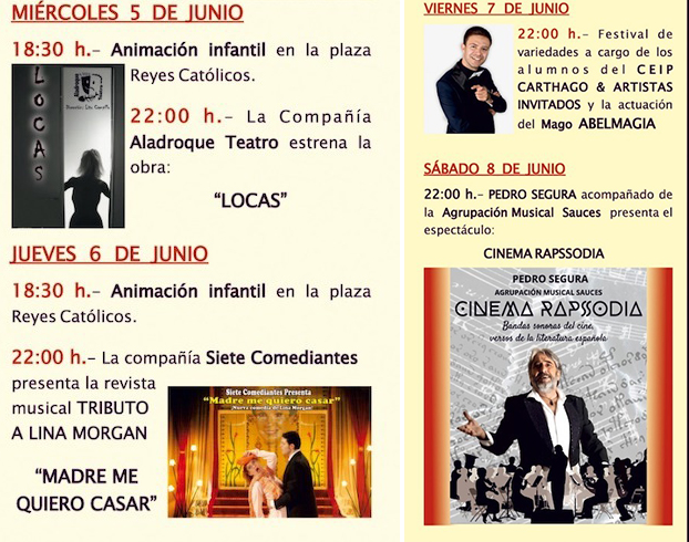 'Cinema Rapsodia' será con el espectáculo que estará este sábado 8 de junio en Vistalegre (Cartagena) a las 22h. 'Cinema Rapsodia' está en gira con Sinfónicas y bandas de música de todo el pais, es un espectáculo diferente que fusiona la magia de Pedro Segura recitando e interpretando los mejores poemas de la literatura nacional, con las bandas sonoras más icónicas del cine de la mano de la Agrupación Musical Sauces. Segura ha querido hacer un show especial donde con grandes sorpresas que nos esperan en esta noche mágica.