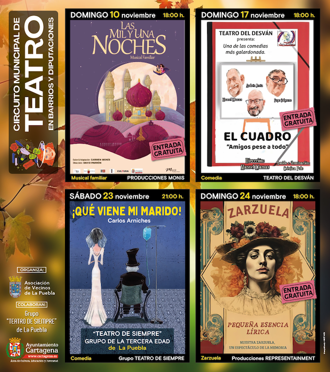 La Asociación de Vecinos de La Puebla, con la colaboración de la concejalía de Cultura del Ayuntamiento de Cartagena y el grupo local 'Teatro de siempre', ha preparado para este mes de noviembre un programa teatral con cuatro representaciones en el local social, comenzando este domingo con 'Las mil y una noches', con entrada gratuita.