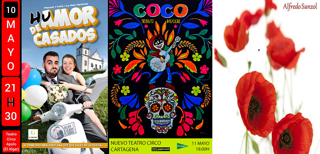 El teatro circo de El Algar ofrece el viernes 'Humor de casados' a cargo de 'Mariano y Punto' y 'La Nena' (21.30 horas). El sábado, por su parte, está el espectáculo infantil 'Coco' a las 18 horas con 'Barbarie musical' y la representación de la obra 'Delicadas', a cargo de la compañía de teatro de la 'Escuela municipal de Cartagena', a las 21 horas.