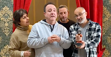 Así presenta el grupo teatral cartagenero a 'Maldita herencia', obra que tendrá su estreno nacional el próximo 14 de diciembre en el Nuevo Teatro Circo (20.30 horas). "Es el absurdo, la risa y el disparate", proclaman. Escrita y dirigida por Alfredo Ávila, será interpretada por José María Bañón, Raquel Torres y Pedro Alejandro Villalba. En la foto, actores de la compañía tras representar hace unas fechas 'Tic Tac Poe' en el Teatro Romea de Murcia.