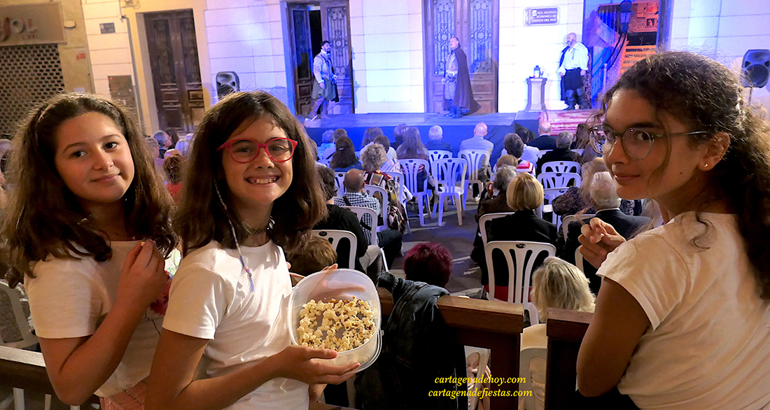 Una estupenda noche atrajo a más de doscientas personas a la calle del Aire de Cartagena para contemplar la representación de ‘Inés del alma mía’, adaptación del clásico de Zorilla de 1844 a cargo de la compañía ‘Ditirambo’, que hoy se traslada al Museo Arqueológico.