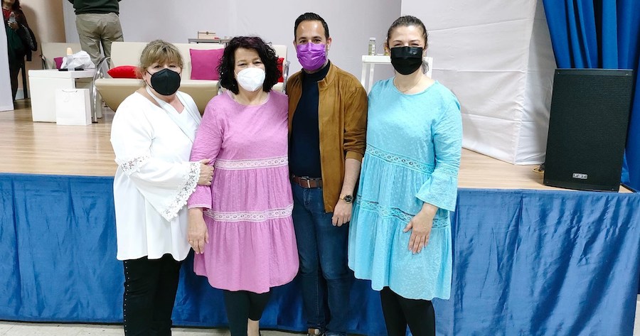 La vigésimo primera edición certamen nacional ‘Isidoro Máiquez’ ha celebrado sus dos primeras representaciones (‘Tres+tres son siete’ y ‘Ernesto, la importancia de ser honesto’) con éxito de público en el local de la asociación de vecinos, donde esta noche estará ‘Don Quijote en los infiernos’. El jueves es la jornada solidaria para ayudar a la Hospitalidad de Santa Teresa y se busca relevo para el viernes al ser baja ‘Teatro Construcción’ por el coronavirus. En la imagen, el concejal David Martínez posa con las actrices de Algameca Teatro en la jornada inaugural.