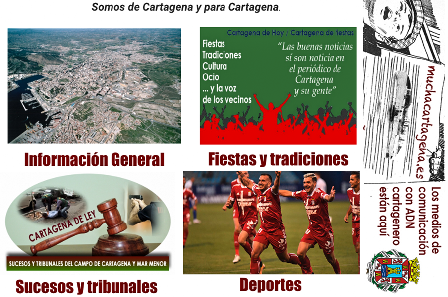 El mayor portal informativo tu municipio a través de una plataforma que se esquematiza en Cartagena Actualidad para información general y deportes, Cartagena de Ley para sucesos y tribunales, y Cartagena de Hoy para fiestas, tradiciones, cultura y actividades de los vecinos.