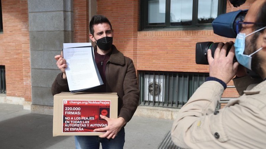 La recogida de firmas por el territorio nacional a través del portal change.org ha recabado más de doscientos mil apoyos contra la posibilidad que estudia el Gobierno de la nación, las cuales fueron entregadas al director del gabinete del ministro. La campaña continúa y se ha decidido crear la entidad 'Comité Coordinador Antipeajes' con otras iniciativas similares.