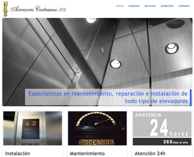 Leer más...Ascensores Cartagena S.L. es una empresa dedicada a la instalación, conservación, reparación, modernización de ascensores, montacargas, montacoches, plataformas salvaescaleras, etc. Surgida en 1977, está en constante evolución para ofrecer calidad, grandes prestaciones y un magnífico precio a los clientes. Además tiene un servicio de 24 horas con el teléfono 608 46 64 42.
